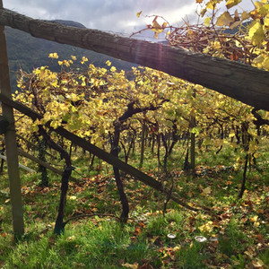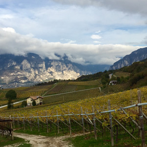 Steep, vine clad slopes, cheek by jowl with mountains in the clouds and sunshine breaking through – so very Trentino